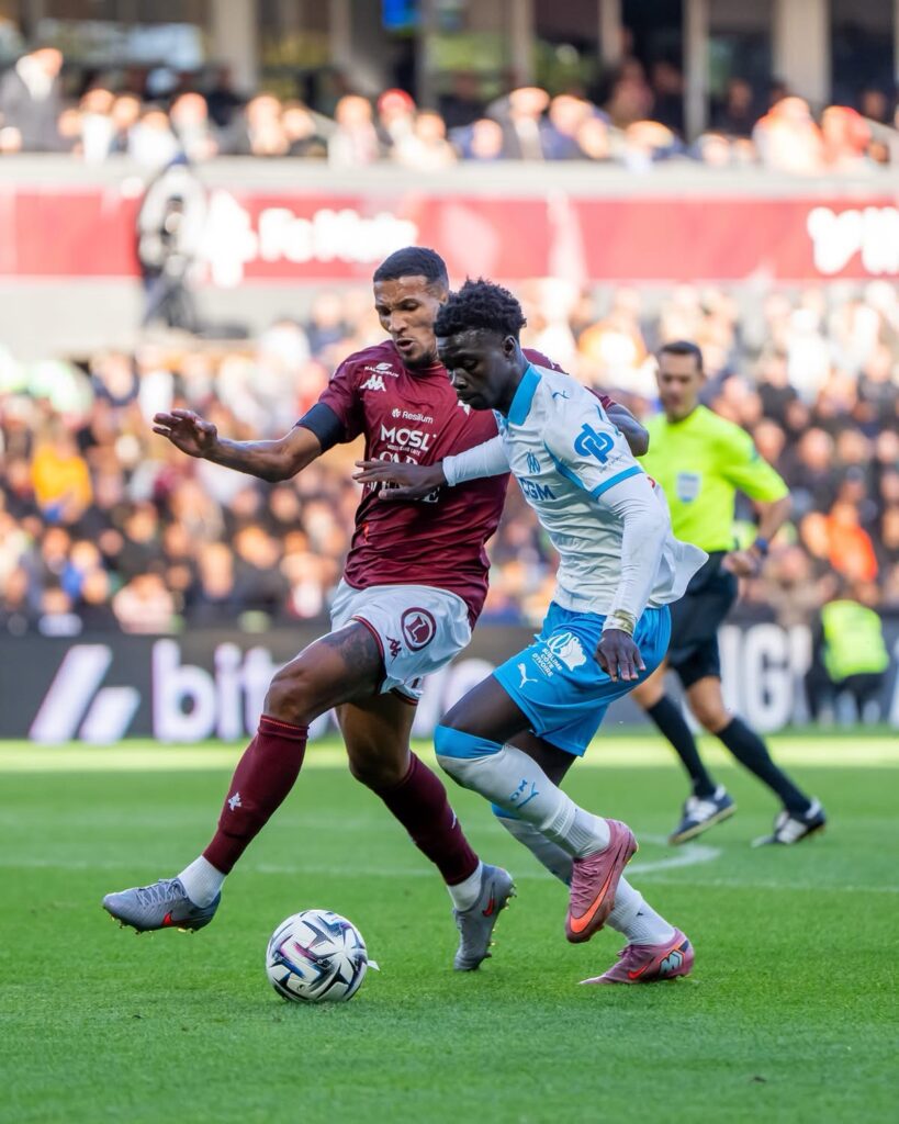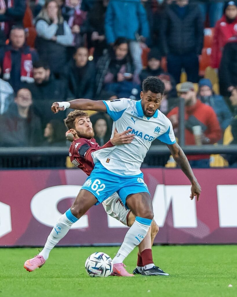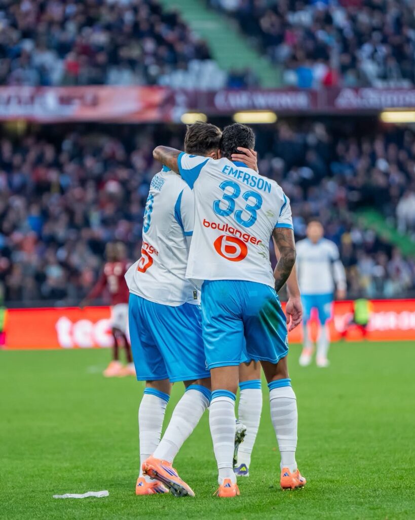 Pour cette 7ᵉ journée de Ligue 1, Roberto De Zerbi aligne Robinio Vaz en pointe, soutenu par Igor Paixão, Mason Greenwood et Angel Gomes. Le milieu est composé de Matt O’Riley et Bilal Nadir, avec Arthur Vermeeren en sentinelle. La défense repose sur Benjamin Pavard, Nayef Aguerd, Facundo Medina et Emerson Palmieri, devant Gerónimo Rulli dans les buts. Dès les premières minutes, Mason Greenwood (5ᵉ) et Angel Gomes (8ᵉ) manquent deux occasions franches. À la 30ᵉ minute, Mason Greenwood trouve le poteau droit d’Aleuxandre Fischer, gardien du FC Metz. Malgré les fautes techniques des Grenats, les Phocéens dominent sans concrétiser. Igor Paixão bute sur Alexandre Fischer juste après la pause (48ᵉ), avant que Mason Greenwood ne touche à nouveau le montant (50ᵉ).