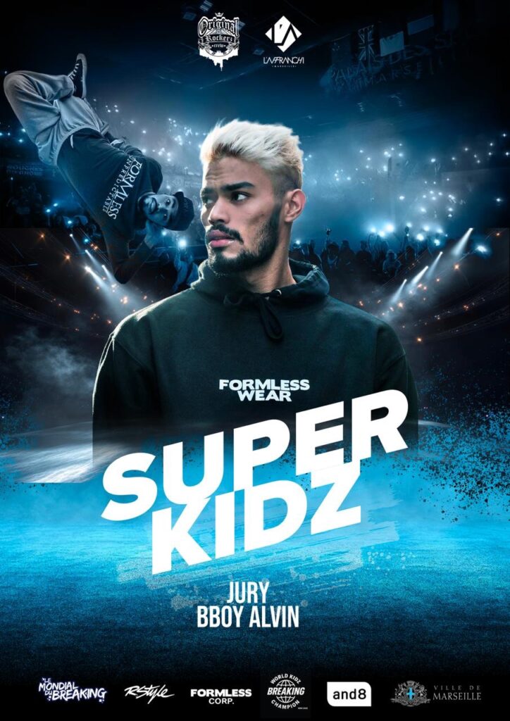 Il fallait un rêveur pour imaginer SUPER KIDZ. Un vrai. Quelqu’un qui danse avec le cœur et pense avec les pieds. Abdelaziz, fondateur du World Kidz Breaking Champion et de Formless Corp, est de cette trempe-là. Avec OG Samson et Original Rockerz, il a façonné un projet qui parle aux kidz comme aux anciens, aux crews comme aux solitaires, à ceux qui vivent le Hip Hop comme une langue maternelle. SUPER KIDZ (3 vs 3 Kidz), c’est une nouvelle licence qui vient enrichir l’univers Formless aux côtés du Multiverse Battle (2 vs 2) et du World Kidz Breaking Champion (1 vs 1 Kidz). Trois formats, trois portes d’entrée dans un monde en perpétuel mouvement. Trois façons de dire que le breaking est vivant, pluriel, et qu’il appartient à ceux qui le font vibrer.