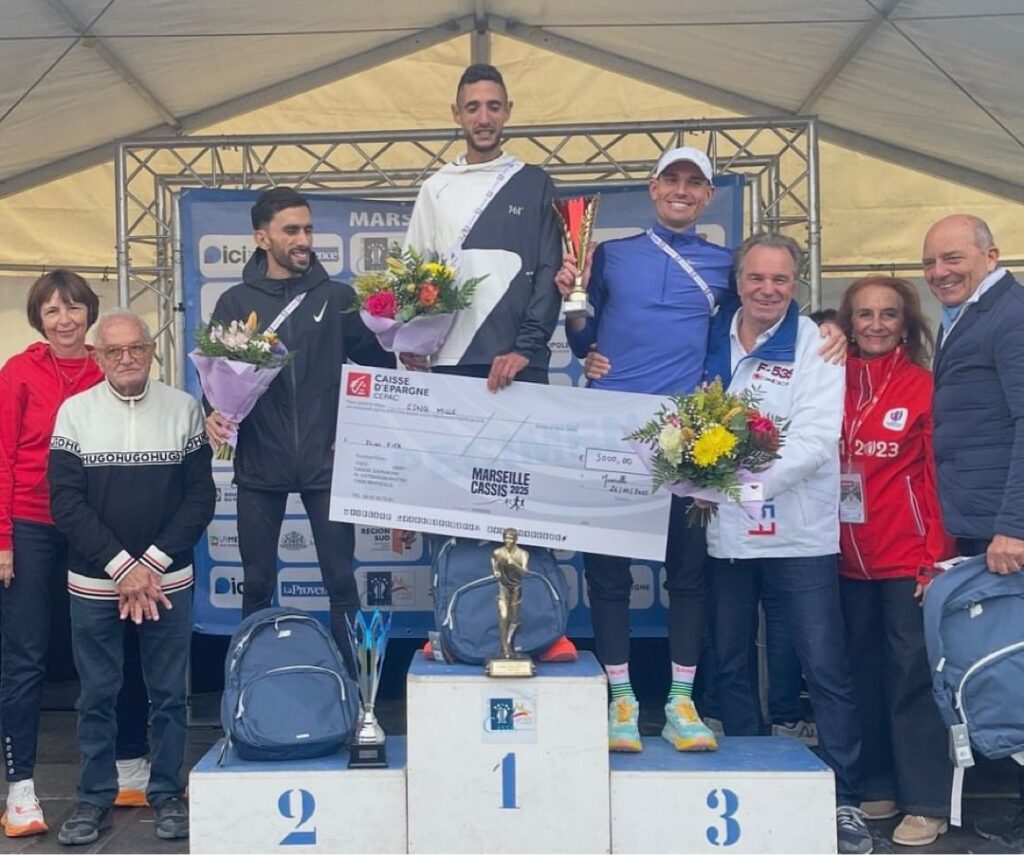 Ils étaient trois. Trois hommes lancés à pleine vitesse dans les rues de Cassis. Mohamed El Tahlaoui menait, Mykola Mevsha résistait, mais Ilias Fifa attendait. Et dans les derniers hectomètres, il a frappé. Un sprint. Une remontée fulgurante. Une ligne franchie en 1h01’07. Sept secondes devant El Tahlaoui. Trente devant Mevsha. Un finish de feu, comme un cri dans le vent.
