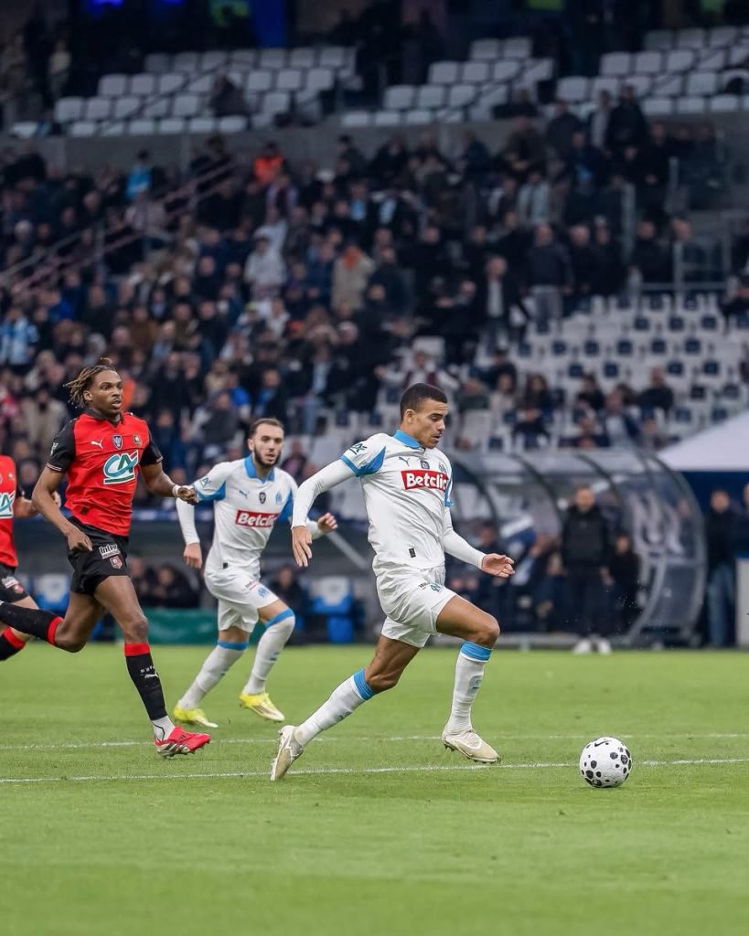Il fallait une réaction, une vraie. Après des semaines plombées par les désillusions en Ligue 1 et en Ligue des Champions, l’Olympique de Marseille abordait ce huitième de finale de Coupe de France avec l’obligation de se rassurer. Il n’aura fallu que… deux minutes pour que le décor soit planté. Sur une relance rennaise mal maîtrisée, Quentin Merlin se trouait complètement. Timothy Weah, parfaitement à l’affût, récupérait le ballon et servait Amine Gouiri, qui n’avait plus qu’à conclure du droit pour ouvrir le score (1–0). Un début idéal, presque inespéré, pour une équipe marseillaise en quête de confiance. La suite du premier acte fut moins rythmée, mais largement maîtrisée par l’OM. Rennes, trop timide, trop imprécis, ne parvenait jamais à installer le moindre danger. Les phocéens, eux, géraient, contrôlaient, attendaient leur moment.